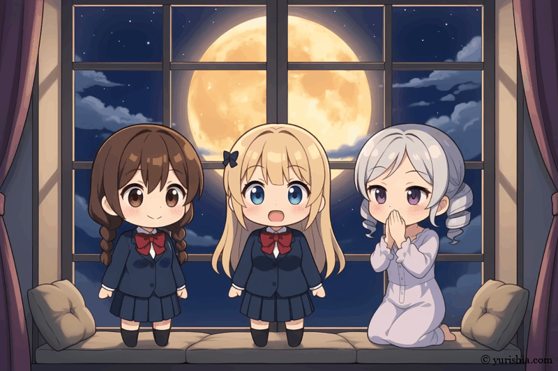 それぞれの想いを乗せて、静かな夜は更けていく。試験まで、あとわずか。 月の光だけが、彼女たちの恋の行方を、静かに見守っていた。